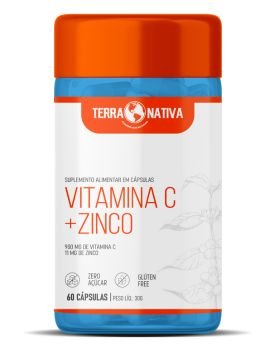 Suplemento alimentar em cápsulas que combina a ação antioxidante da vitamina C com o suporte imunológico do zinco.