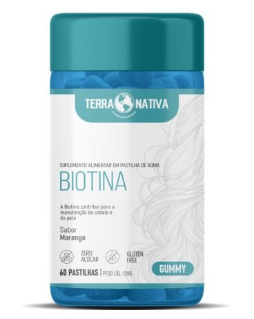 Gummy sabor morango com biotina, auxiliam na saúde dos cabelos, fortalecem unhas e melhoram a pele.