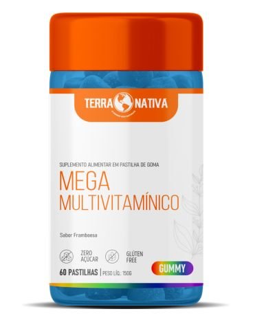 Multivitamínico em Gummy sabor framboesa para mais energia/disposição e contribui para saúde da pele, cabelos e unhas.
