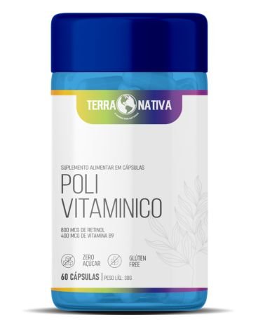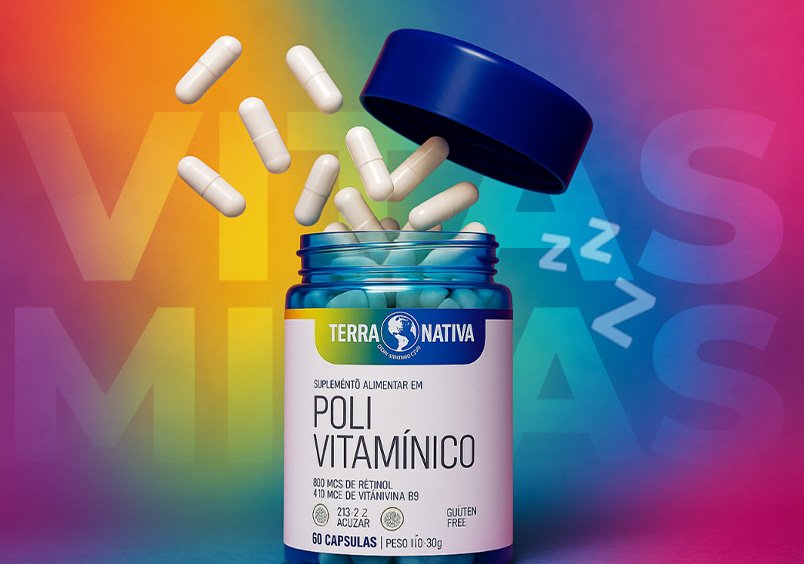 Suplemento em cápsulas com combinação de vitaminas e minerais essenciais para o equilíbrio do organismo.