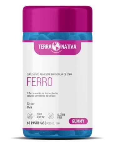 Gummy sabor uva com ferro, mineral essencial para o sangue, dando mais energia e ajudando na prevenção e combate a anemia.